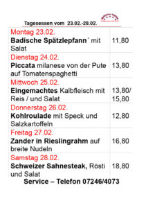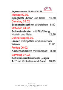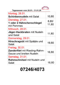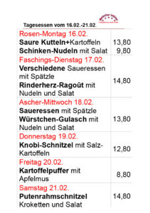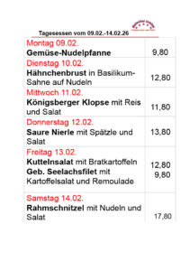 Hier unsere kommenden TAGESGERICHTE: