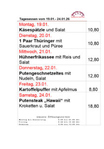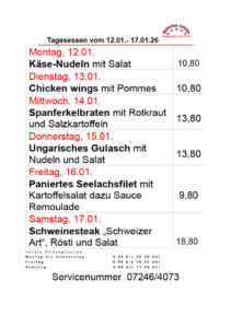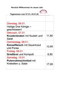 Hier unsere kommenden TAGESGERICHTE: